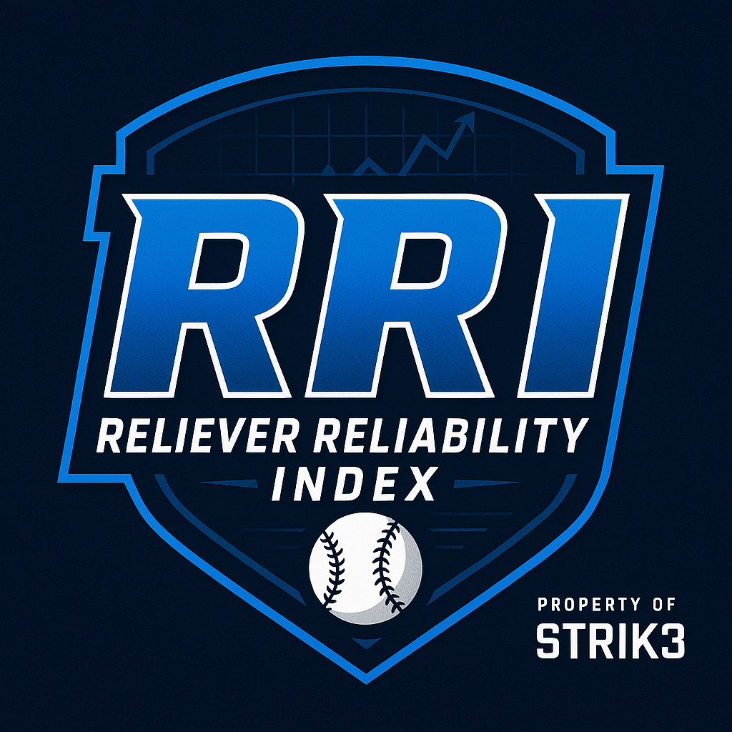 The Reliever Reliability Index (RRI) is a proprietary scoring system that evaluates MLB and MiLB relievers based on a dynamic blend of performance metrics, bullpen roles, and contextual factors. It’s designed to reflect both real-world value and fantasy reliability, updated continuously throughout the season.